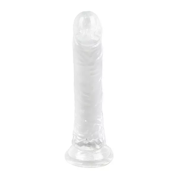 A Prótese com Ventosa combina realismo e praticidade. Feito em silicone transparente, possui glande definida, veias texturizadas e uma ventosa firme para uso em superfícies lisas. Ideal para penetrações em ângulo reto, oferece conforto, versatilidade e fácil limpeza. Use com lubrificante à base de água para uma experiência ainda melhor.